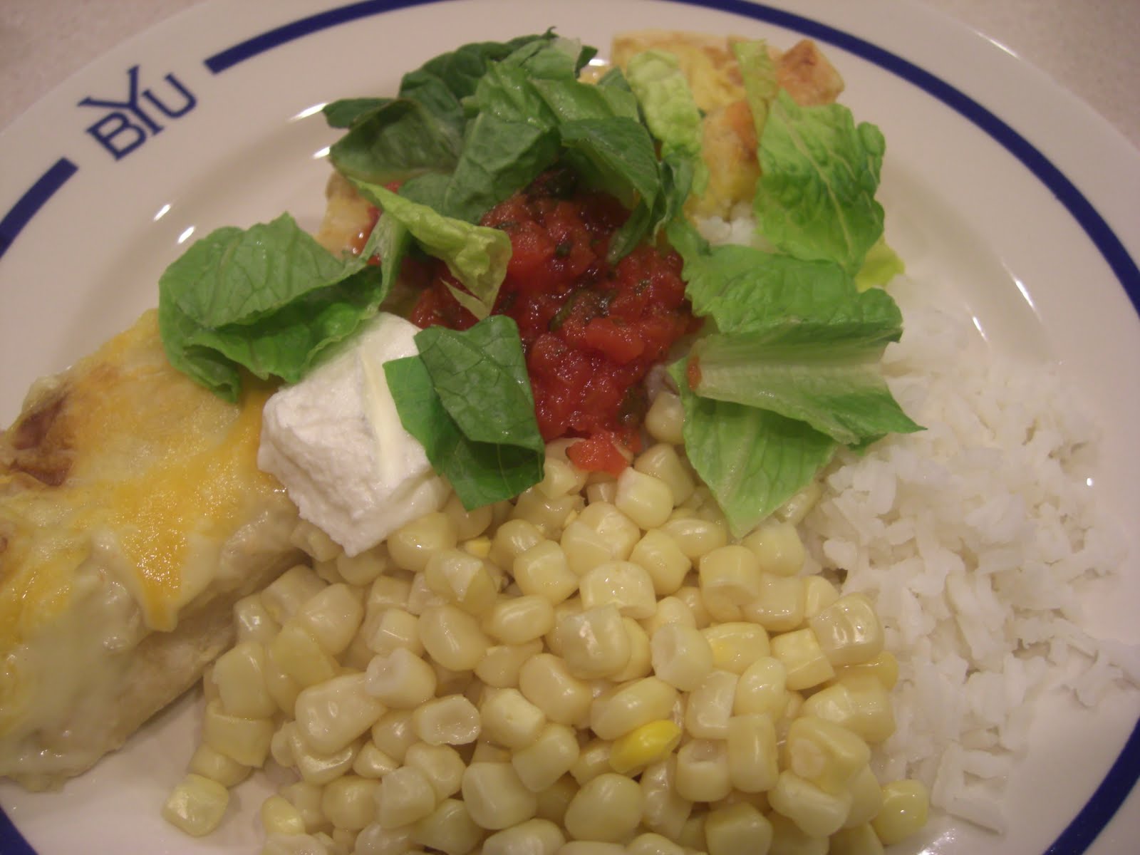 Cook tortillas and set aside. Cook chicken and salsa in a crock pot until done. Cool and then shred chicken into a big bowl. Add sour cream, cheese, and chilies. Mix together. Roll into tortillas and place in 9×13 pan. In separate bowl make sauce. Pour over enchiladas. Top with cheese. Bake 30-40 minutes uncovered at 350. Serve with Green Rice.