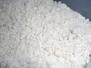 Stir in first 4 ingredients. Cut in shortening. Add oats. Place in a container to save for later.