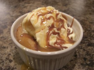 Spray ramekins. Press dough into dish until it is about 1-1 1/2 inches thick. Bake at 350 for 15 minutes. Remove from oven. Let cookie cool slightly. Top with scoop of ice cream and your choice of toppings. Enjoy!